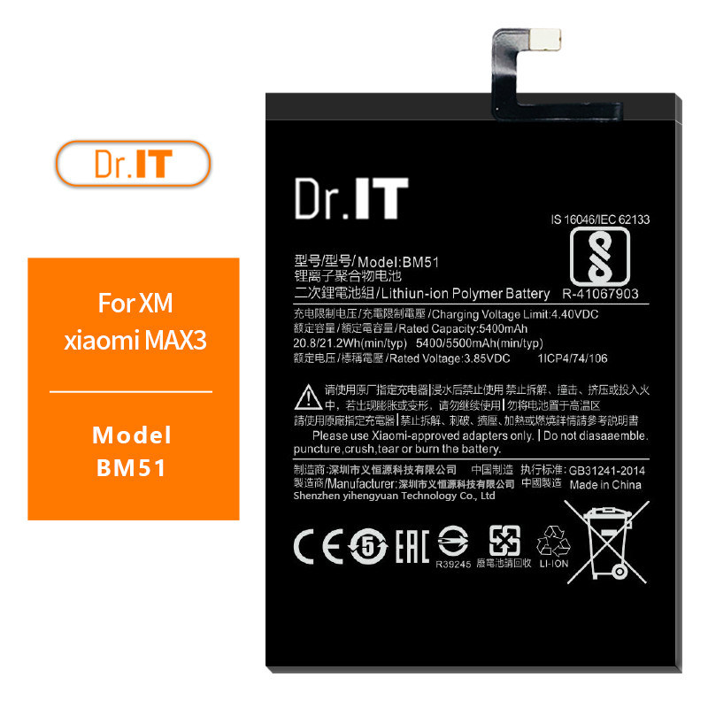 | Product name | Original Capacity Replacement Phone Battery BM51 for Xiaomi MAX3 5500mAh |